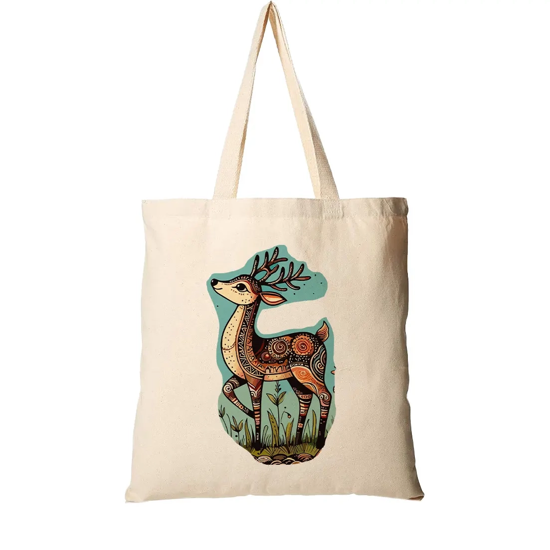 Canvas Tote Bag with Artistic Deer Print