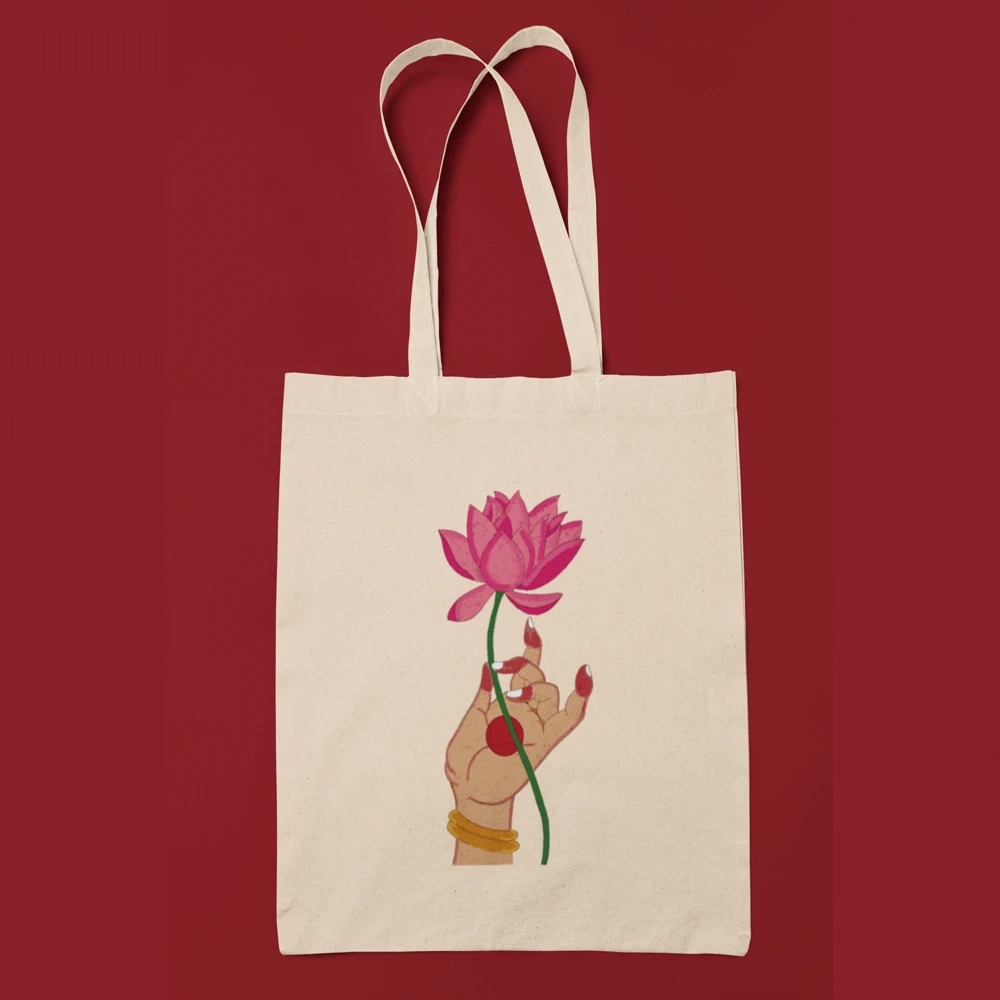 Be the first to review “Canvas Tote Bag with Lotus Print”
