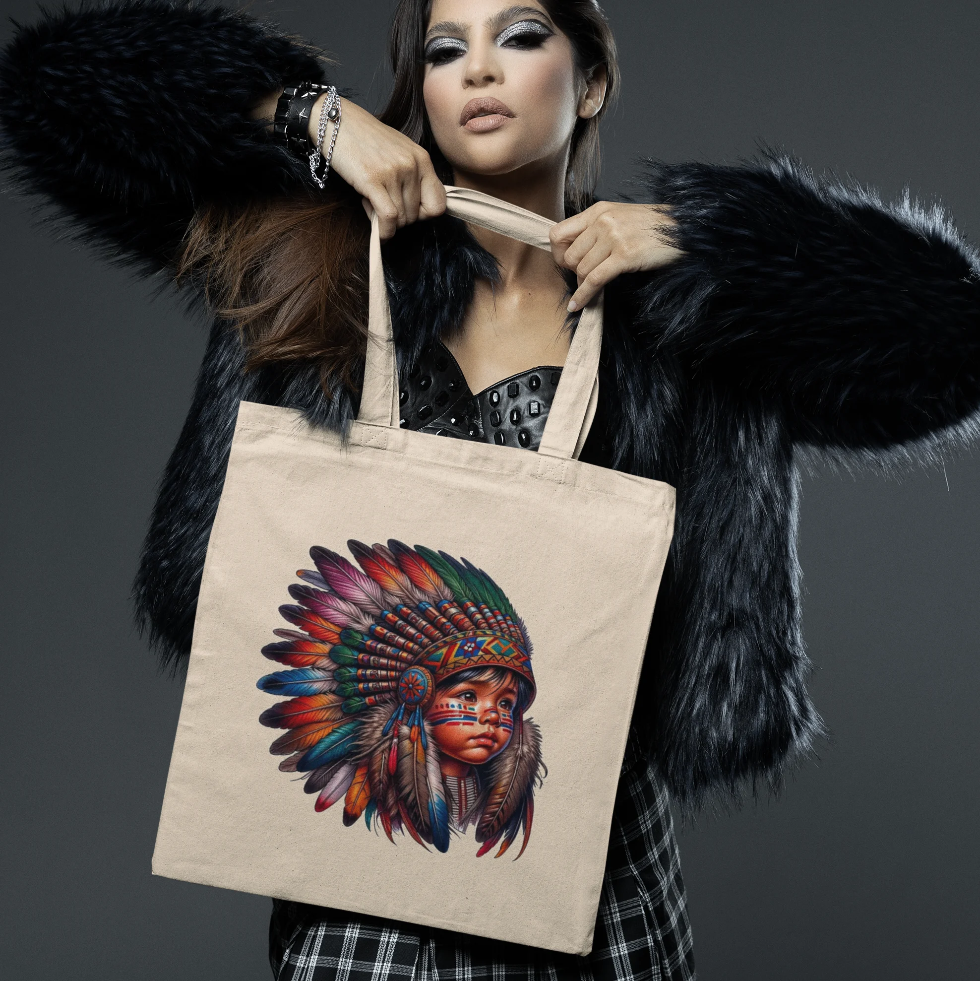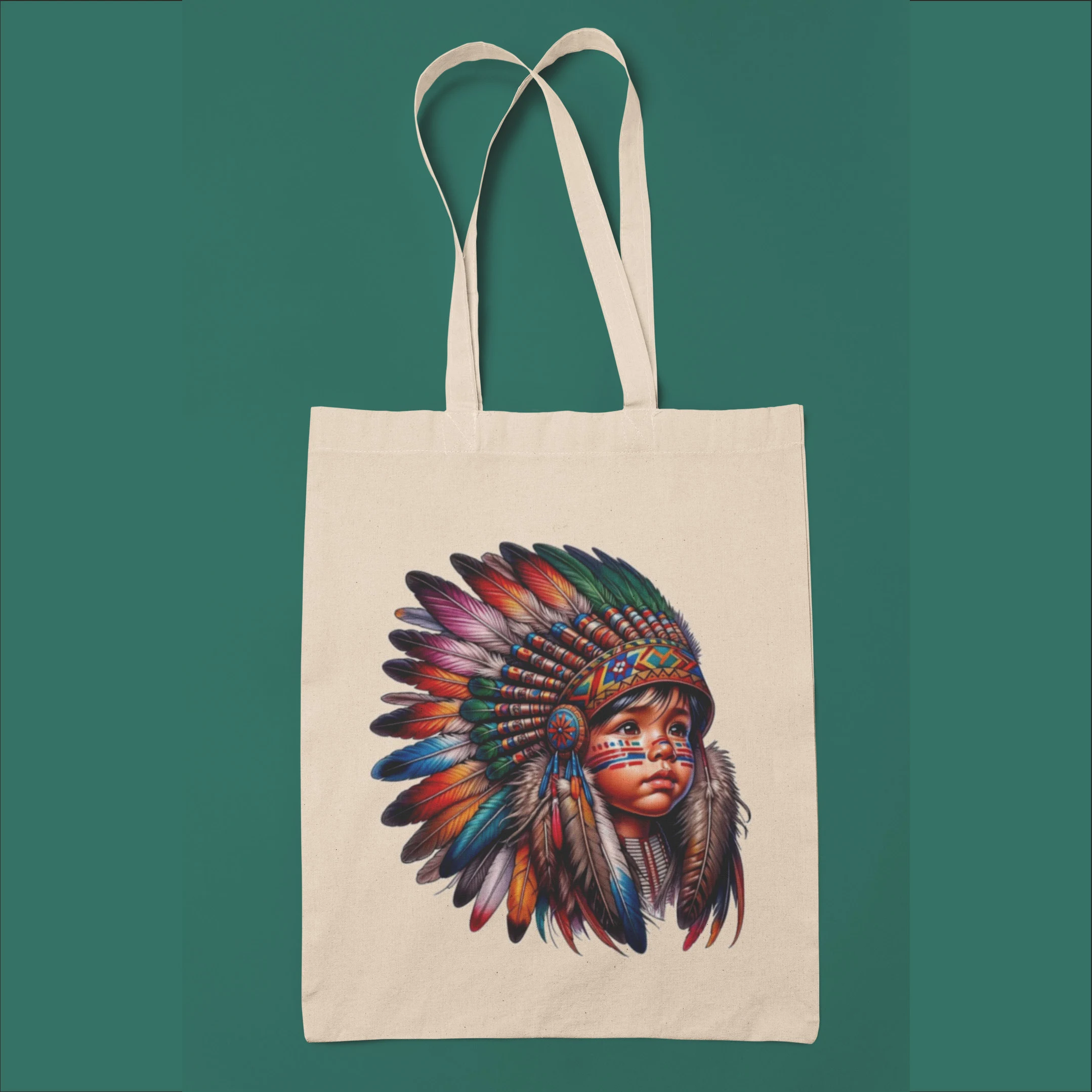 Headdressed boy print canvas tote bag